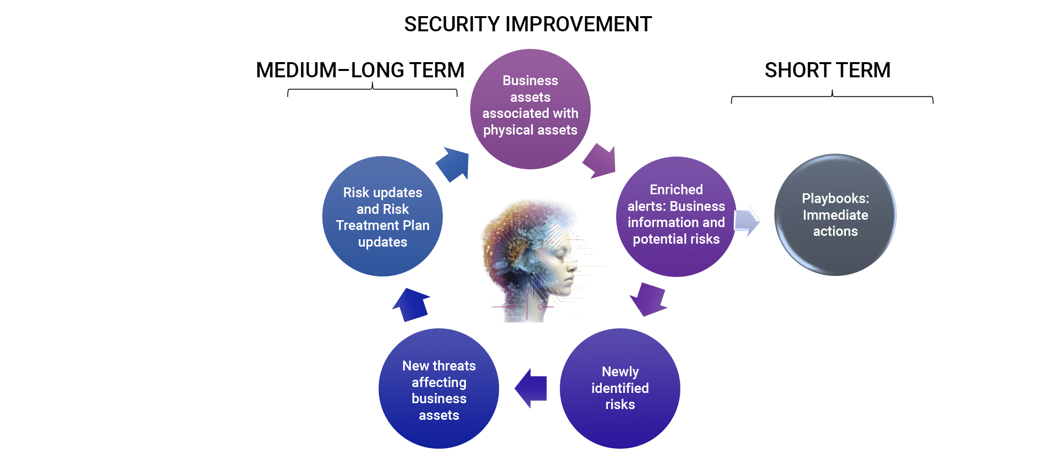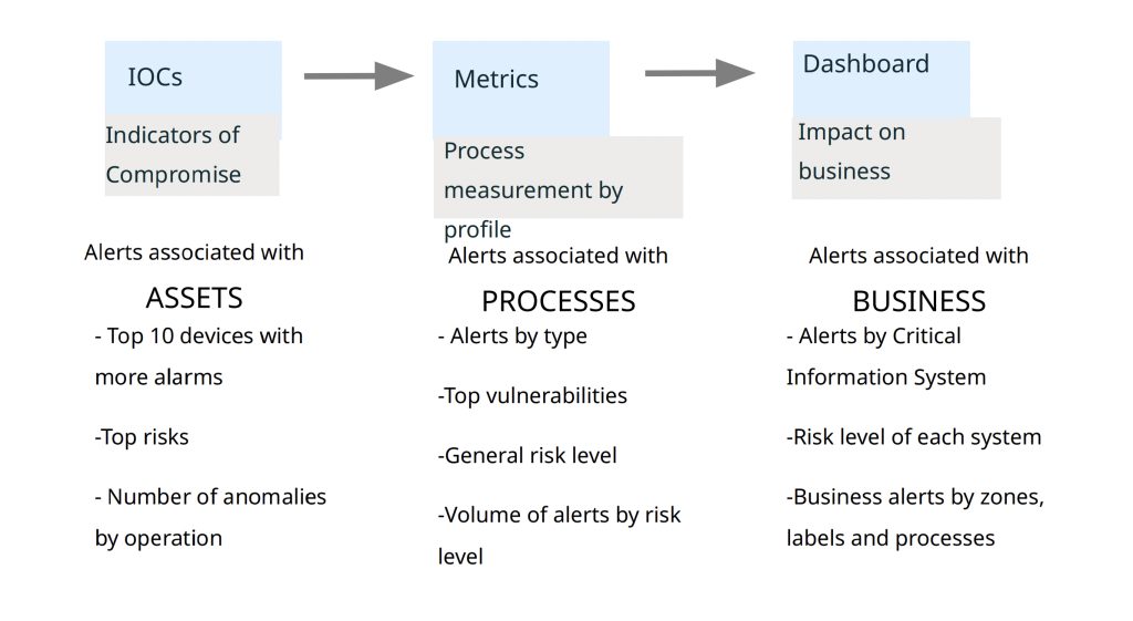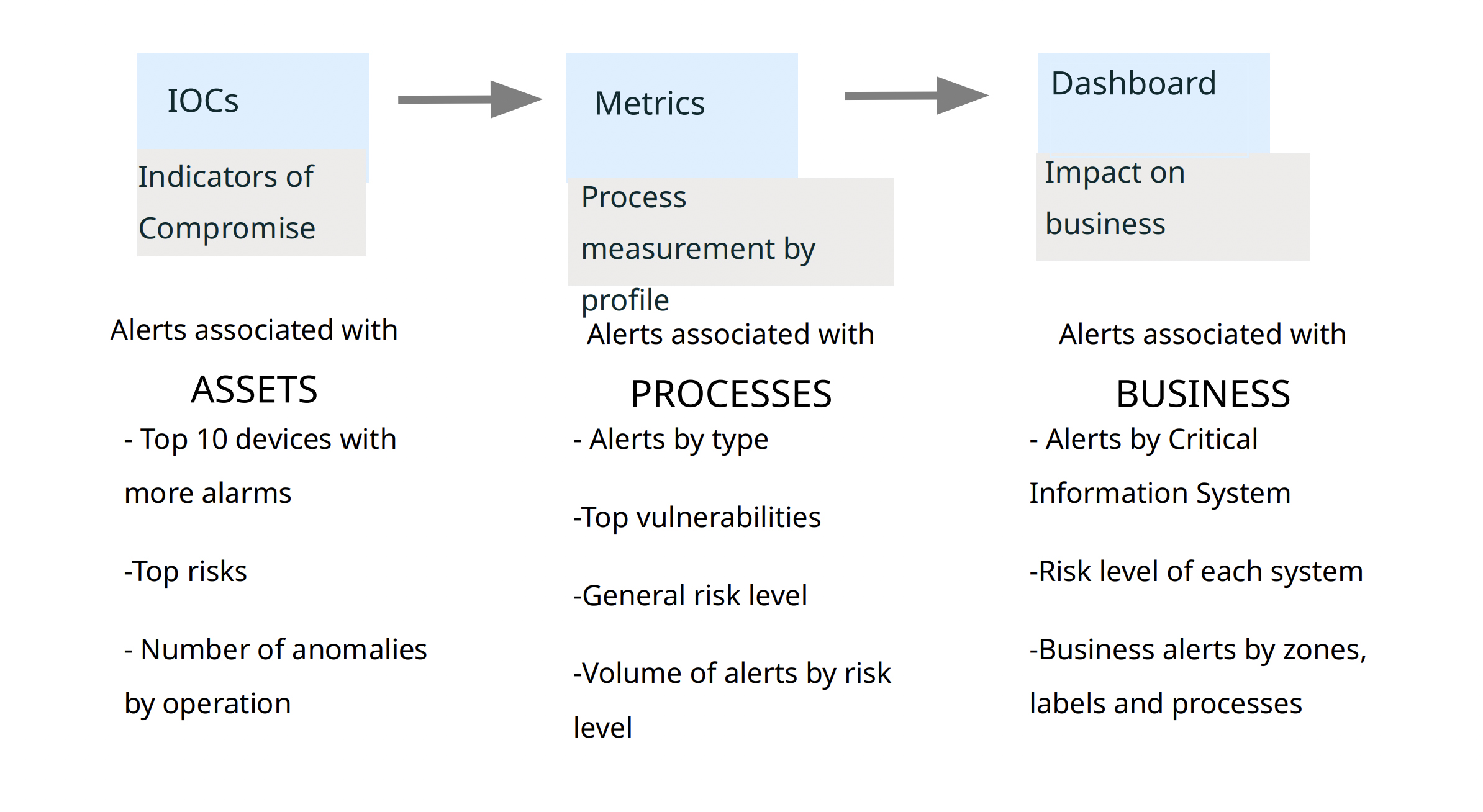 The dashboard allows you to view alerts, risks, and anomalies grouped by business asset, as well as by high-level services or directly by business unit, providing a complete overview of the operations environment and enabling each stakeholder to have their own dedicated dashboard.